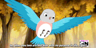 The three stopped at a colonial tavern one night in order to ask for directions, but Beatrice was immediately kicked out by the proprietor for fear of bad luck because she's a bluebird. She sat outside in the rain attempting to converse with a horse in the tavern's stable, but gave up and eventually flew over to the Woodsman who she heard nearby in order to get directions on her own. Beatrice screamed, seeing a strange shadow and knocking herself out by flying into a tree, and was quickly rescued by Wirt.